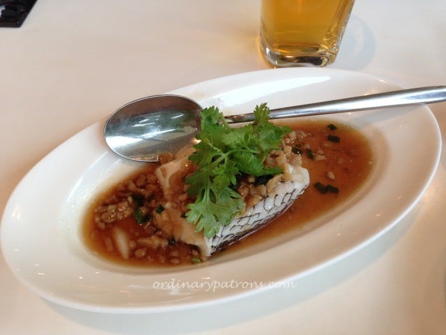 We, being ordinary patrons with small appetites decided to order some classics – poached spinach in superior soup ($12.80), stewed beef brisket and tendon ($15.80) and steamed sea perch fillet ($13.80). The dishes were done in good Chinese restaurant standards. Â The portions were however a bit small, even by our modest appetites.