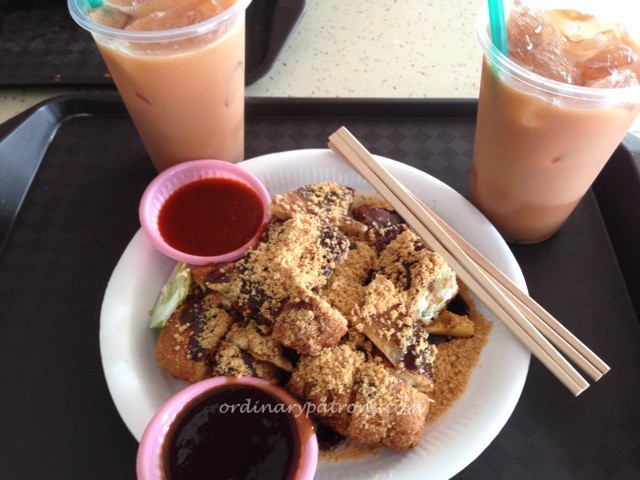 The last item we had were some toasted tau poks. Â We were attracted by the delightful name and signboard of the stall. Â The tau poks (dried bean curd puffs) were well toasted with a lot of vegetables inserted. This is quite an unusual dish to find these days and was prepared by an old charming uncle that spoke really traditional Teochew. Just being at the stall makes you feel like you have traveled 50 years back in time.