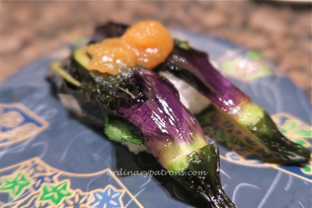 We helped ourselves to whatever caught out eye on the belt and ordered some of the higher priced items such as scallop and sea urchin sushi. The menu is quite extensive and is not limited to raw fish items. The two items which were outstanding were the grilled eggplant and the deep-fried octopus ‘legs’. The raw fish items were all fresh, had a very healthy sheen on them and had a good pure taste. We took quite a few items without knowing what they were.