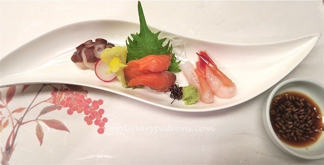 The appetizer was an assortment of small intricate items such as potato paste salad, carrot jelly and simmered soya beans. Each with a distinct and unusual taste, the appetizer certainly did its job of opening up our appetite. The soup dish – Japanese style potato potage was an excellent example of the attractiveness of Japanese zen. It was such a basic dish made from humble ingredients but the end result was such a thing of beauty and good taste. The sashimi did not contain any expensive cuts of fish yet it was very well presented and the freshness of the ingredients was enough to carry the dish.