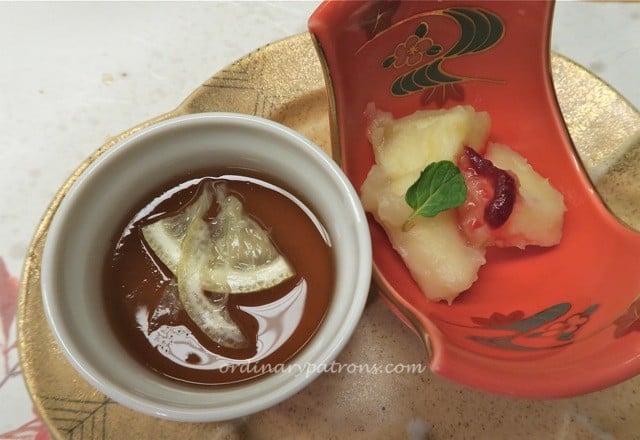 The Rusutsu pork was cooked in mini claypots on the table. The taste was unremarkable but did its job as a ‘filler’ dish so that you felt almost full by the time you finish the dish. The noodle dish was light and simple. The noodles were smooth and easily glided down your throat. Yummy. Dessert was some jelly and “mushed” apple and potato. A sweet end to the dinner. This was no gourmet kaiseki meal, but a modest one made with simple ingredients but the combination of flavours and attractive presentation made this an enjoyable meal.