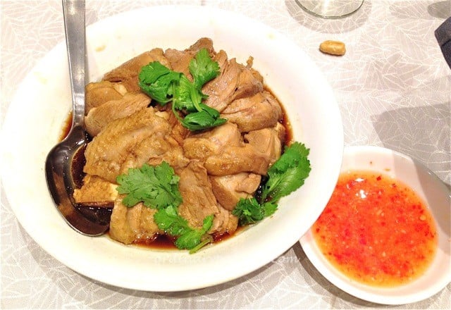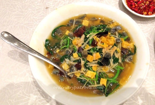 The duck is really quintessential Teochew. The meat was cooked till soft and goes perfectly with the vinegar and chopped garlic dip. The essence of Teochew cuisine can be felt in the first two dishes. The last spinach dish was more generic Chinese in style but provided a soft and calming end to the meal. All in all, Â it was a lot of food for two of us. The food would have been adequate for three persons, leaving space for the oh nee dessert (which regrettably we could not find room for that day).