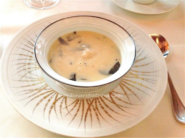 Next was the daikon (Japanese radish) soup. Again, the simplicity of the soup and the sunburst design of the plate made for a presentation that is quite exquisite. A light taste of black truffles added a further layer of complexity to the soup. Yummy.