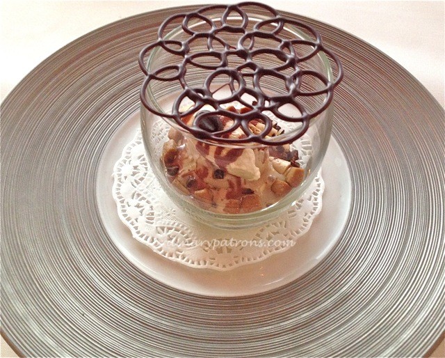 The final course of the Les Amis Set Lunch was cafe liegeois – a French dessert made with ice-cream, cream and coffee. It was served with an ornate chocolate grill that looks like something from a wrought iron gate. It was small and light and, in conjunction with the petite fours, brought the meal to a delightful end.