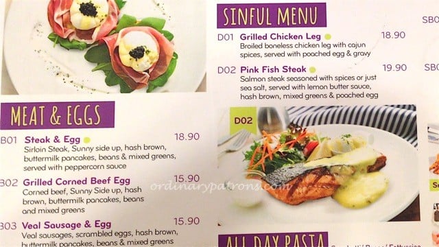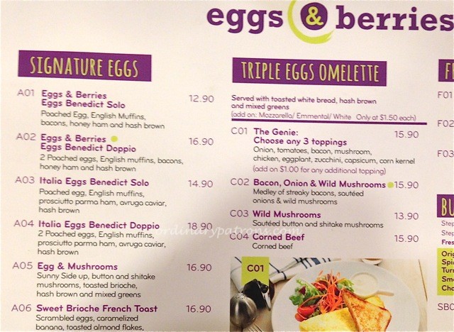 Apart from the set meals, Eggs & Berries has quite a comprehensive menu. Here are snapshots of random parts of their menu to give you a general flavour. We also noted that they have a reasonable looking burger set at $13.90. We might try that another time when we are really hungry and the small portions are inadequate.