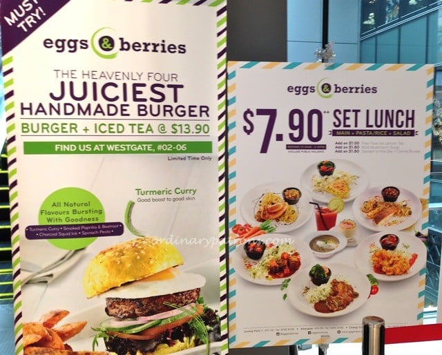 In our ongoing search for good places for lunch at Jurong East, we came across this restaurant named Eggs & Berries on level 2 of Westgate shopping mall. At first glance, the name of the restaurant suggests that it is an all-day breakfast kind of place. But we discovered that they serve more than that and, even better, set lunches at very reasonable prices as well.