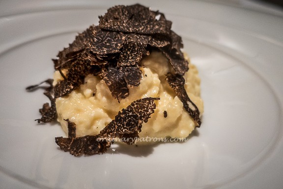 We went to Gunther’s Restaurant for dinner to celebrate a special occasion. We were warmly greeted and shown to our table in a side room, which could be used as a private dining room if need be. The usual question of “still or sparkling” was asked. We chose “sparkling water”, which we later found out was $12 per bottle. We were given menus and the platter of fresh raw food was brought out. There were tuna, Alaskan crab, blue lobster, scallops, wagyu beef, rack of lamb, cabbage, orange and a large goose egg. Black truffle was also brought out for us to see and get a whiff of the scent. Those raw items on the platter were the specials for the night apart from what were in the menu. A charming server explained how each of the special items could be prepared. Carpaccio style was mentioned a number of times and many of the special dishes involved truffle.