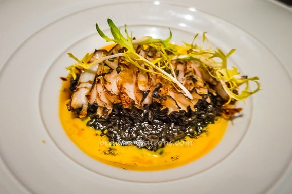 The grilled scallop with tomatoes was tender, succulent with a tinge of sweetness. The goose egg was served scrambled with generous shavings of black truffle. There was nothing very special about the scrambled egg and we found the scent and taste of truffle a little over-powering. That was the one dish we did not enjoy.