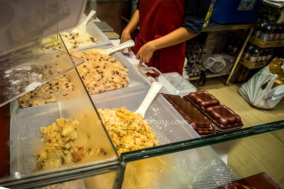 Okowa has a long history in Japan. Okowa is basically steamed glutinous rice mixed with different interesting ingredients such as red beans, chestnuts or seafood. Yonehachi has more than 140 Okowa shops in Japan. Yonehachi in Takashimaya, Singapore is essentially a takeaway counter with a few tables for about 30 dine-in patrons. There is a small food preparation area and the Japanese rice is steamed right in the store.