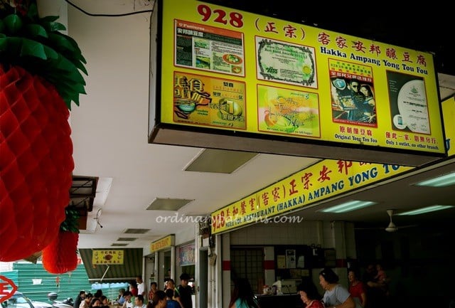 We recently had lunch at Ngee Fou Hakka Ampang Yong Tou Fou which is located in a row of shophouses along Upper Thomson Road. I have used the full name of the restaurant as stated on the main signboard as there is another yong tau foo restaurant two doors away that is simply named Ampang Yong Tau Fu and looks quite similar as well. So you can take your pick when you get here. Both seem well patronised. We decided on this one because it had the bigger crowd and a slightly more vibrant feel.