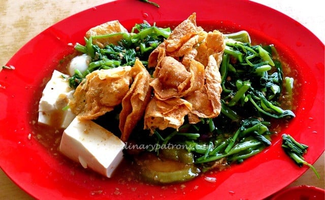 Below the fried items was a large portion of kang kong vegetables and about ten pieces of boiled assorted yong tau foo, all of which were smothered by a layer of thick and tasty gravy. The boiled items were of the familiar variety such as tofu, tau kwa, fish balls, bitter gourd stuffed with fish paste and a quail egg.