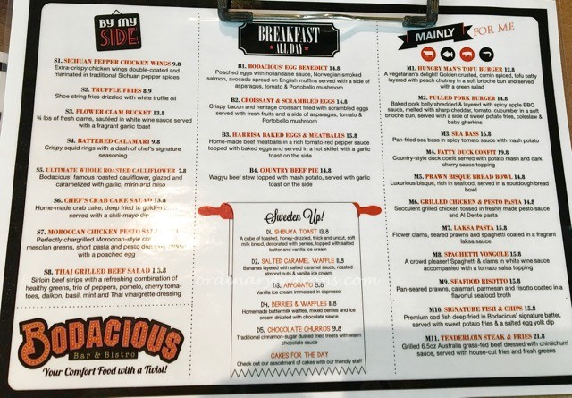 It has been almost a year since our last visit to the Bodacious Bistro in Biopolis, Buona Vista. We dropped in again recently to see what has changed. Our previous visit was generally very positive. You can see more pictures and read more of Bodacious Bistros in our previous post here.