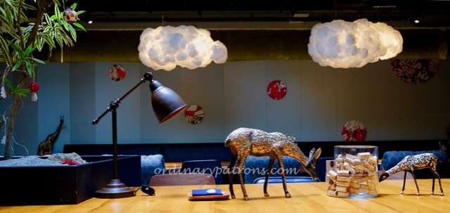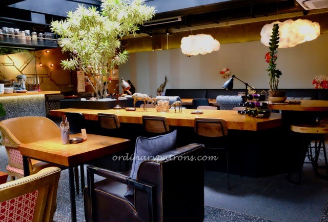 According to a Straits Times article, the 90-seat cafe was started by Mr Liu Bin, owner of the Good Wood Cafe chain in Chengdu, China. A large, well-stocked bar welcomes diners at the entrance to the Birds of a Feather Cafe. There were some small tables here. The main seating areas can be found deeper inside. Plants, comfortable seating and soft overhead lighting from two skylights combine to produce a cozy ambience. Where are the birds?  Our cheeky server’s reply was that they were the birds!