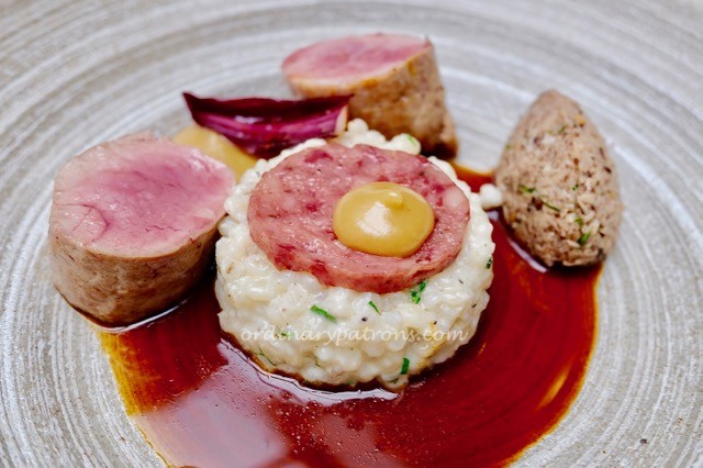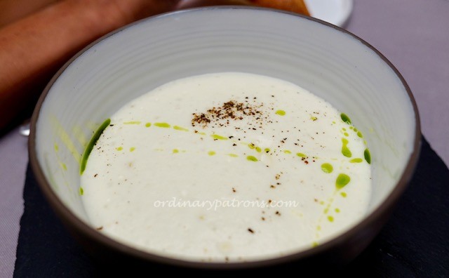 There were three types of starters on the set lunch menu. We were told that the Le emulsion du marche was the must-try item. We decided to try all three, but it turned out that the recommendation was correct. This mushroom soup was the plainest looking dish of the day, but within this thick beige emulsion contained a wonderful concoction of flavours.