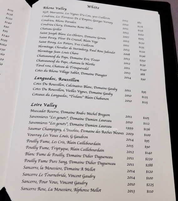 The wine list at the Rhubard Le Restaurant was certainly extensive. It is possible to find a bottle for most budgets, starting from just below $100.