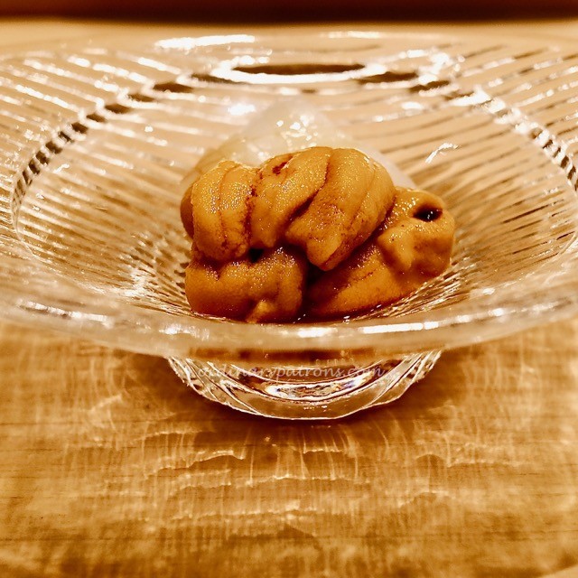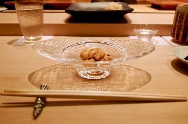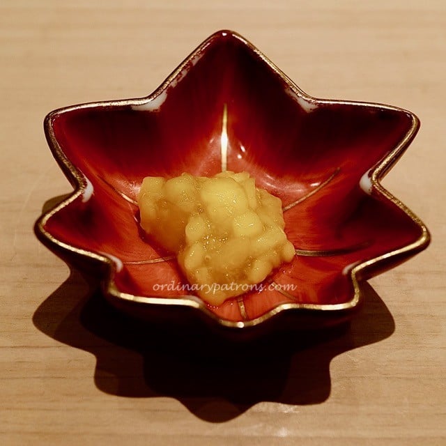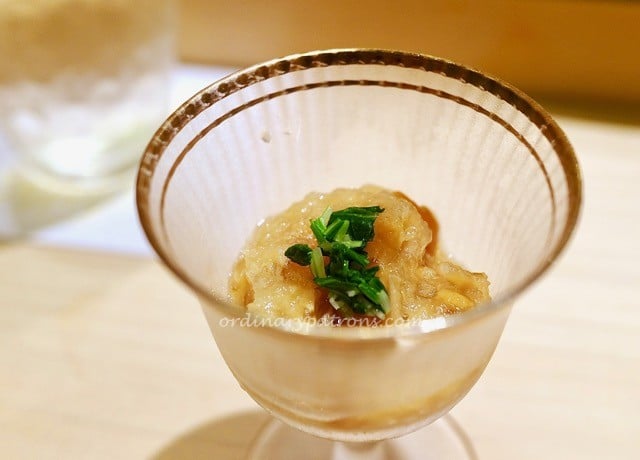 A cooked food dish – mountain potato and yam from Kyoto and steamed king crab and sea urchin. This signalled the end of the sashimi part of dinner.
