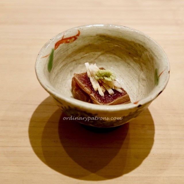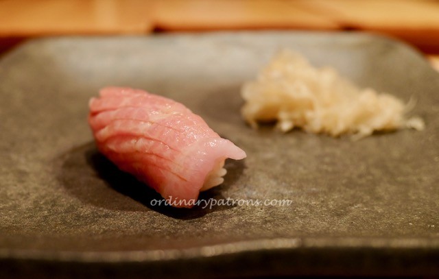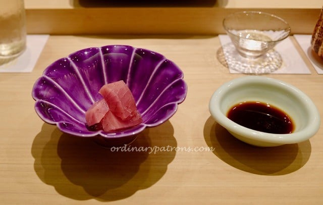 Another highlight of the night – baby tuna sashimi. More tender than the adult ones. No fibrous textures. Just juicy and rich. Eaten with a soy sauce mixed with ginger.