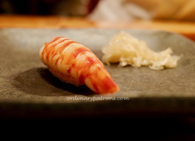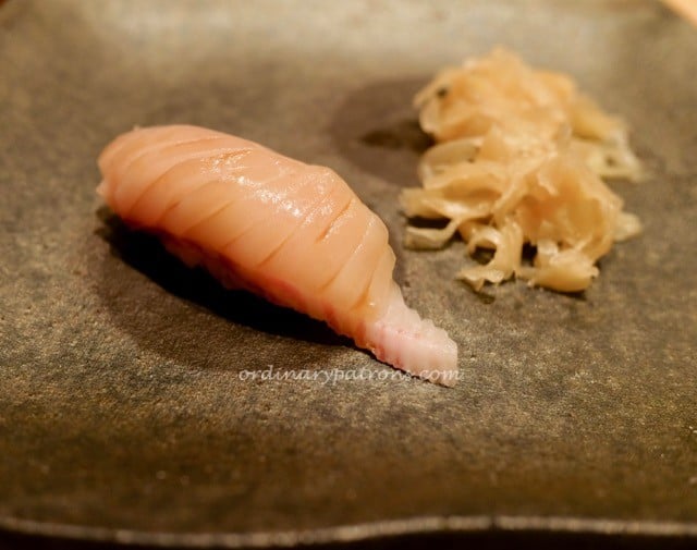 Shinji by Kanesaka Raffles Hotel is done up like a typical sushi restaurant in Japan. Simple light wood finish all round. We were seated at a long counter that accommodates about 16 customers. The photos on the Shinji website seem to suggest that there is a smaller private dining room, but I did not see it. It could be located at the other side of the entrance.