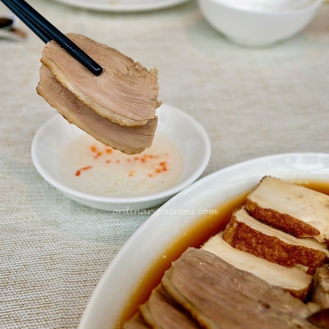 The main Teochew dishes turned out to be much better than the dim sum. Out of habit whenever we visit a Teochew restaurant, we ordered marinated sliced duck ($18 for a small dish). It was a mix of drumstick and breast meat. The presentation and colour of the dish were beautiful. The fat content was just right and the gravy was good. Eaten with the sng nee cho (white vinegar with garlic), it tasted delicious.
