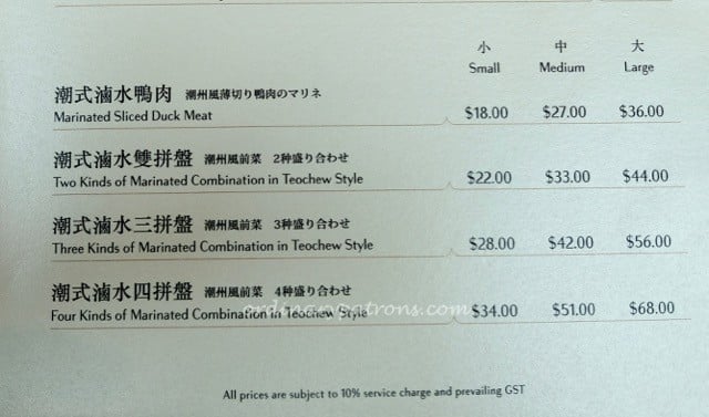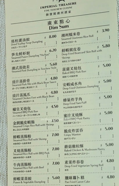 The Imperial Treasure Fine Teochew Cuisine menu is quite a detailed one. I think those looking for traditional Teochew restaurant food will probably be able to find them here. Here are pictures of some sample pages from the dim sum and ala carte menus.