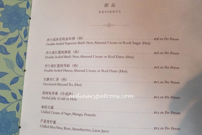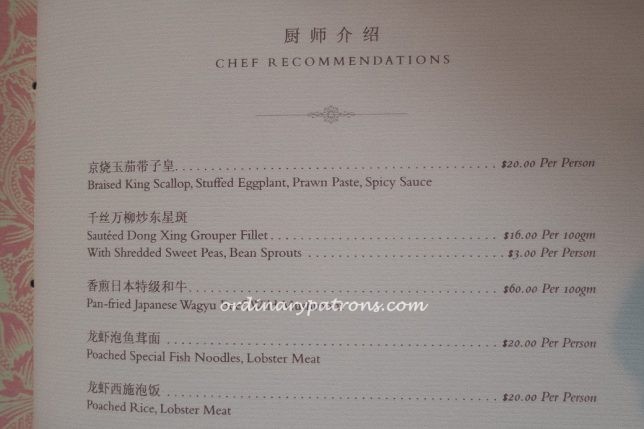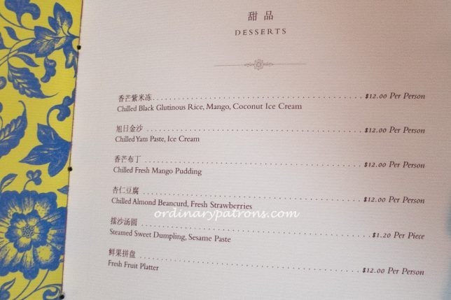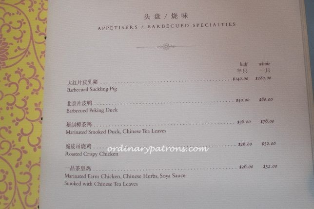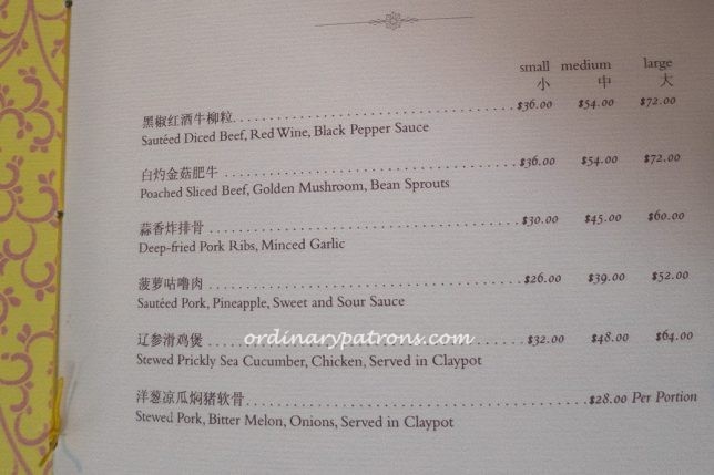 We did not take pictures of the dim sum menu (you can refer to our older post for that). Here are some pages from the Summer Pavilion ala carte menu. We placed our order for a mix of items from the dim sum and the main menus.