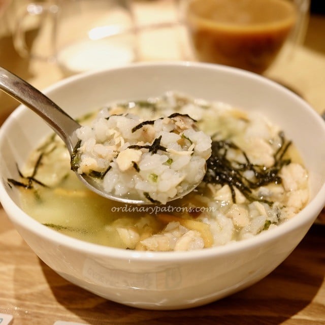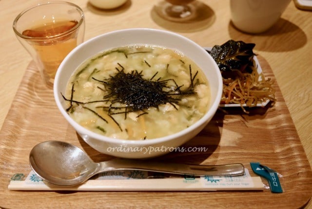 Here are the pictures of the ochazuke – Japanese rice served in green tea broth with some cubes of salmon and topped with some seaweed. It was a light, warm breakfast kind of food. The taste of the broth was mild and pleasant. We would certainly come back for this again.