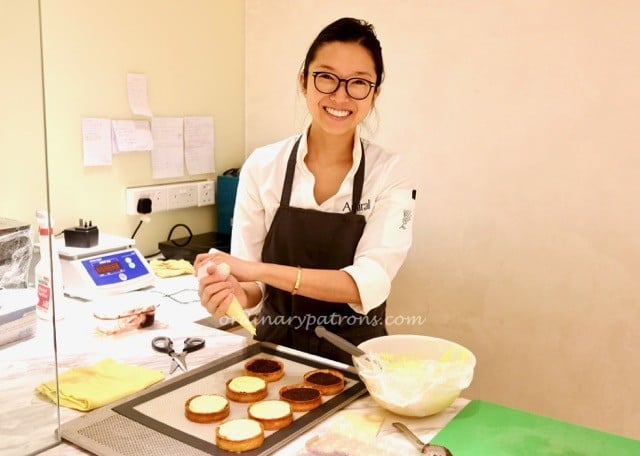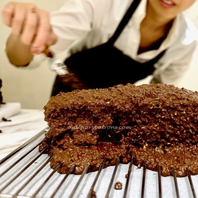 Here are pictures of the pastry chef busy at work at the back of the cafe. The lower picture shows the generous amount of dark chocolate used in the making of her Chocolate Gateau de Voyage. She is one of the friendliest and approachable chefs in Singapore!