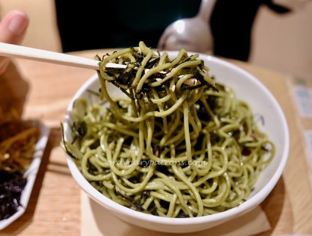 Here are pictures of the chasoba. The cold soba was mixed in some sort of sweetish sesame dressing which did not really appeal to us. We also thought that the soba itself was a bit hard.