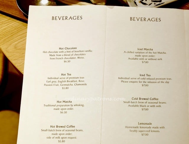 The display cases show off a range of cakes and eclairs. They look very French in character. We soon learnt that they were a patisserie with a Japanese chef. Was there anything else to eat? We were shown the food menu which were mostly the cake type of items. Only two items were non-cake. The people at Amiral Atelier Paragon were very nice and friendly. This, coupled with our curiosity about this little cafe made it irresistible to have brunch there and try out these two items.