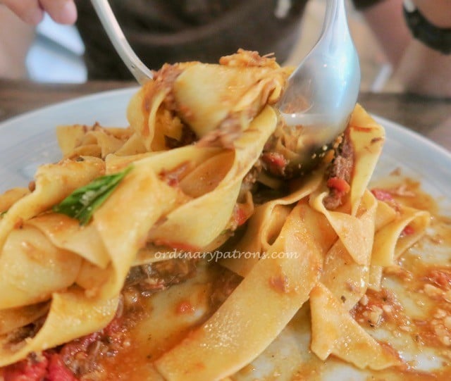 The lamb ragout was served with a thinner tagliatelle pasta. The lamb sauce was less viscous but there was a strong gamey taste. Those who like their lamb with the distinct meaty taste will like this. For us, we preferred lamb with a gentler taste. Like the beef sauce, the lamb ragout was also quite salty.