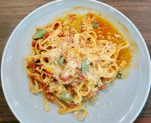 The beef cheek Bolognese was prepared with pappardelle pasta. We liked the texture of the pasta – slightly springy and chewy. We think big thick types of pasta are suitable to go with heavy sauces like this beef Bolognese. The beef had a good robust beefy taste, but was a tad too salty.