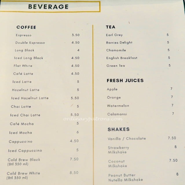 Bee’s Knees is a semi-self service restaurant. We placed our order at the narrow service window and the food was served to us. There is a choice of air-conditioned indoor seating and alfresco. If the weather is good, the outdoor space is more attractive. The indoor area is quite dark and small.