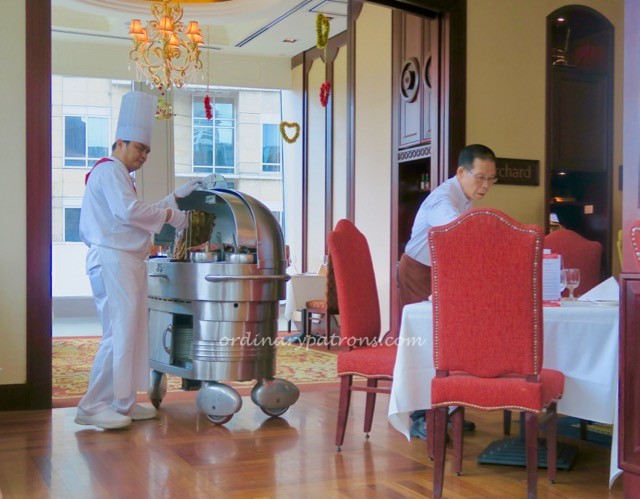 Lawry’s Singapore is located on the fourth floor of Mandarin Gallery. The dining room is beautifully furnished in traditional American style, reflecting the restaurant’s roots. The best seats for couples are the tables along the window, where diners can get a direct view of Orchard Road (and Robinson’s Heeren on the other side).