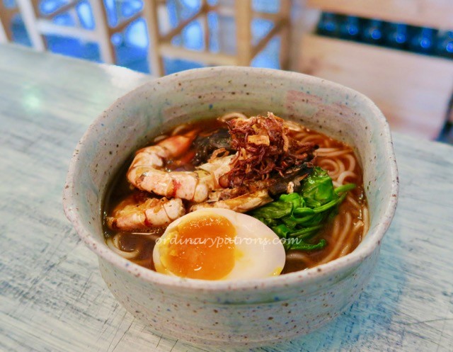 The main course of the lunch set was this bowl of prawn noodles. Somewhat like our usual prawn noodles at hawker centres, but with sweetness and a more refined taste. Â It was not bad but we would have liked it more without the sweetness. The best part of this dish was the onsen egg which was perfectly done. The prawns were tasty but over-cooked.
