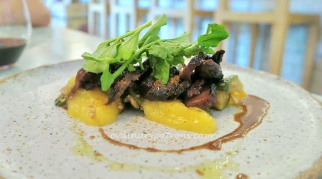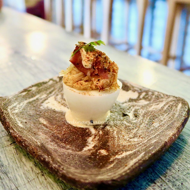 Now we show you the items we ordered from the ala carte menu. The devilled egg ($4.50 each) had quite a bit of toppings that combined to make it a delightful morsel. We can’t identify all the ingredients but according to the menu it contained crabmeat and duck prosciutto. A very enjoyable but tiny dish. We could each eat five of this.
