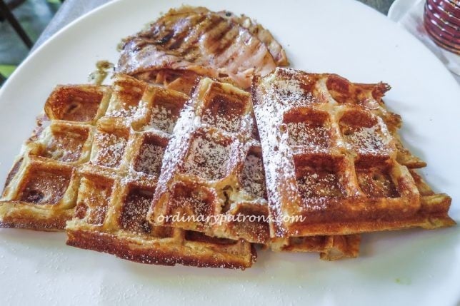 Finally we tried the wholemeal Belgian waffles with ham ($17). The use of wholemeal in the making of this waffles gave it more weight and texture. The mix of sweet syrup, savoury ham with the waffles was a surprisingly good combination. Another classic brunch item that went perfectly with a cup of coffee ($5 black, $6 white).