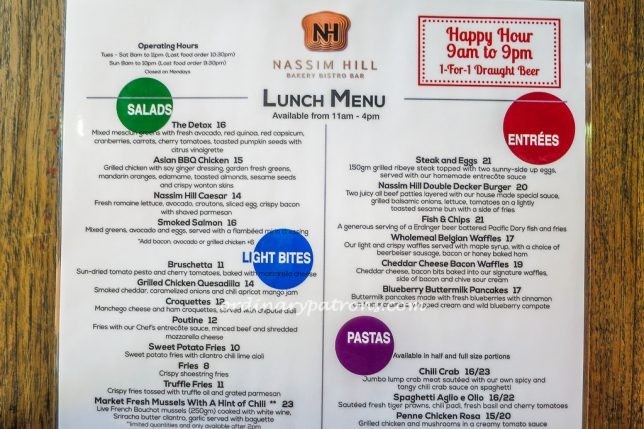 Nassim Hill Bakery Bistro Menu