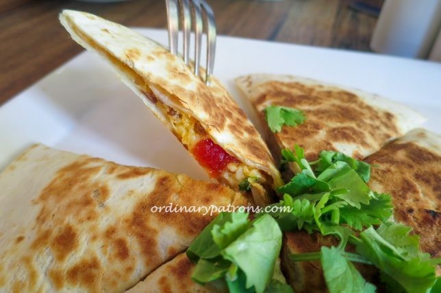 The chicken quesadilla ($14) contained a pleasant mix of chicken, cheese and caramelised onions.