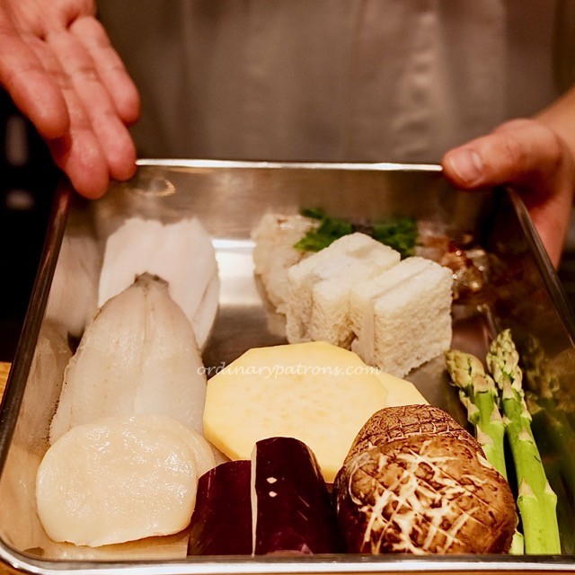 Prior to the start of the lunch proper, the chef presented the raw ingredients for the Momiji course which was a 10 piece tempura course plus a final kakiage (tempura with bits of seafood and vegetable) with rice.