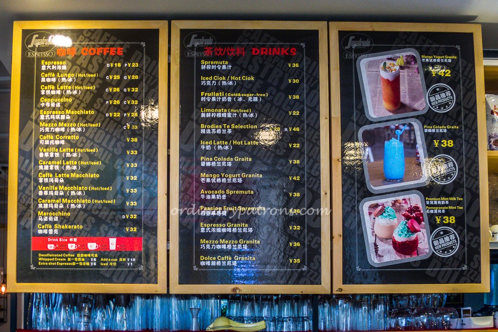 Here are pictures of the Segafredo Espresso Cafe Kunming menu. In addition to coffee, this outlet by the famous Italian coffee company also serves some food items. We tried some cappuccino (26 CNY) and waffles.