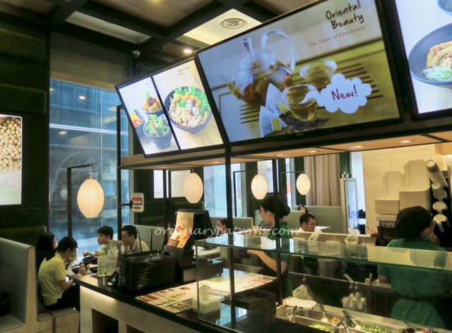 The outlet at Greendot Westgate is not very big. There are a few seats in the air-conditioned indoor space. Unless it is very hot, the outside tables are more pleasant and one can have a view of the pedestrian traffic on the ground floor of the Westgate mall.