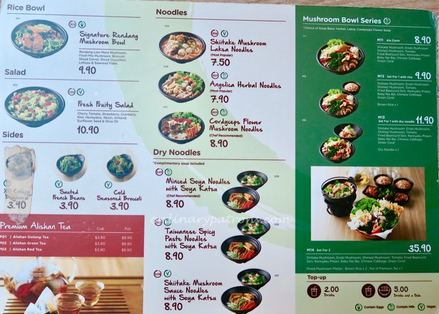 I am neither young nor senior and so did not qualify for any special deal. I decided on the shiitake mushroom laksa ($7.50). As a result of the no meat policy, the usual meat and seafood items are replaced by mushrooms and other substitutes. According to the Greedot Menu, the laksa contains noodles, shiitake mushroom, konnyaku prawn, konnyaku fishball, tau pok and beansprouts.