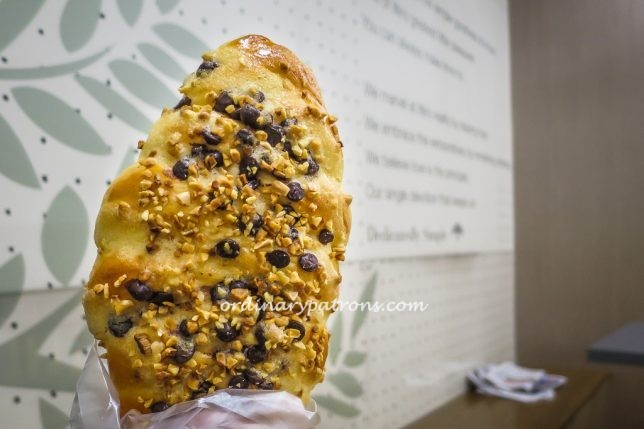 This is the almond and choc bun ($1.80). It is quite a large bun – around 15 cm long. But because it is very light, it can easily be consumed by a person as a snack. The almond crumbs and chocolate bits provided some highlight, but the best part was the bread itself. Light, yet with some resistance to the bite.