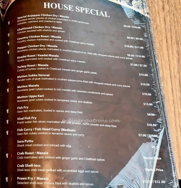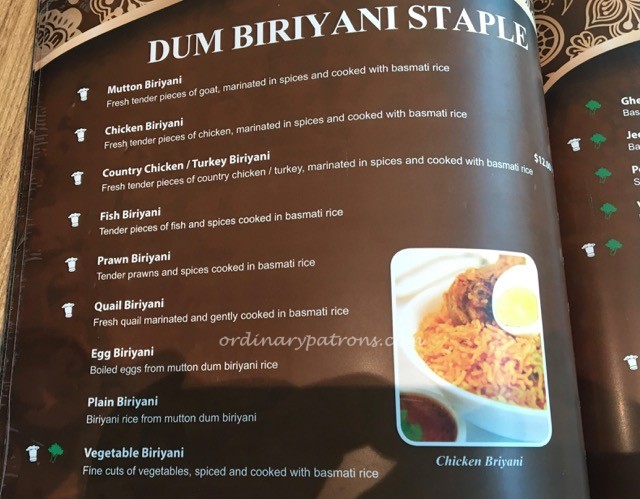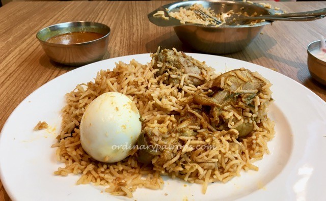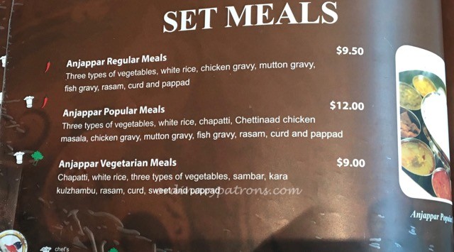 The Anjappar Westgate restaurant is simple and neatly laid out. The set meals section of the menu attracted me especially the $9.50 Anjappar Regular Meals. Â But I was told that the chicken gravy was pure gravy. Â No meat. Â And so I proceeded to look at the biriyani section of the menu. Â A creature of habit, I ordered the familiar Chicken Biriyani ($11). Â To see other dishes of Anjappar, you can read our post on our visit to the main restaurant in Little India here.