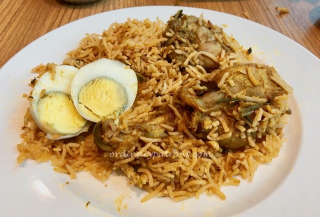 The basmati rice was cooked very well. Soft and dry, with each grain clearly defined. Â Very tasty as well and can be eaten on its own with just a bit of the gravy. Â In addition to pieces of chicken, there was also an egg hidden under the rice.