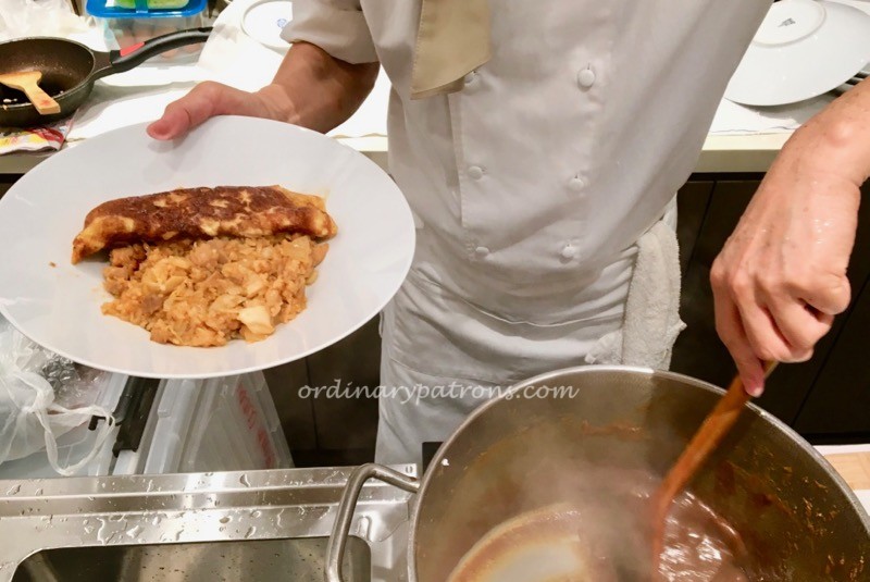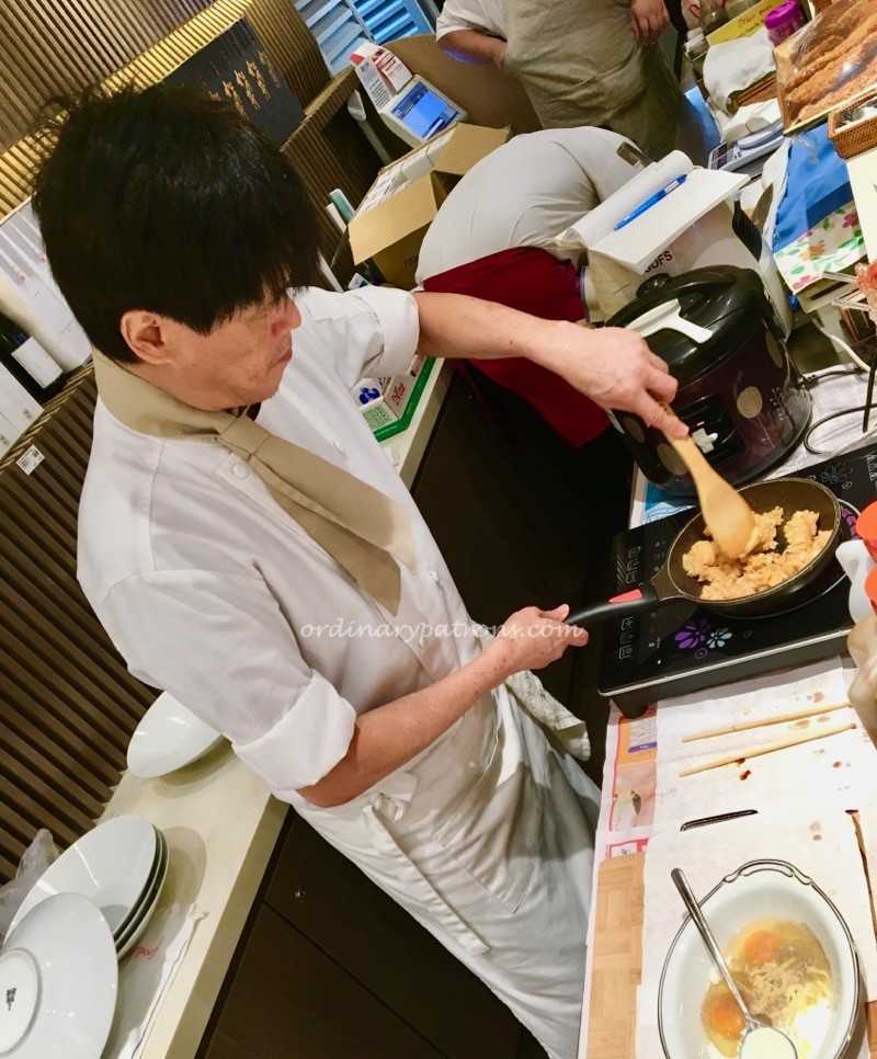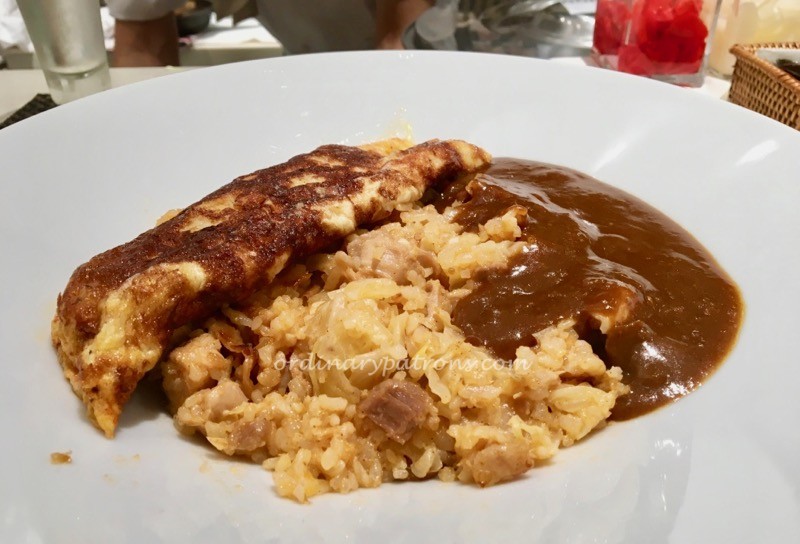 Unlike the meat toppings which had been pre-cooked at some central kitchen, the omelette was prepared fresh in front of me. I also realised that the omelette also includes a portion of fried rice which was also being prepared by the chef. Â Having the chef preparing the food right in front of me had its benefits. The chef asked my preferences – what size portion, would I like some chilli etc. I asked for a small portion of rice and a slight chilli flavour would be nice as Japanese curry tends to be more sweet than spicy.