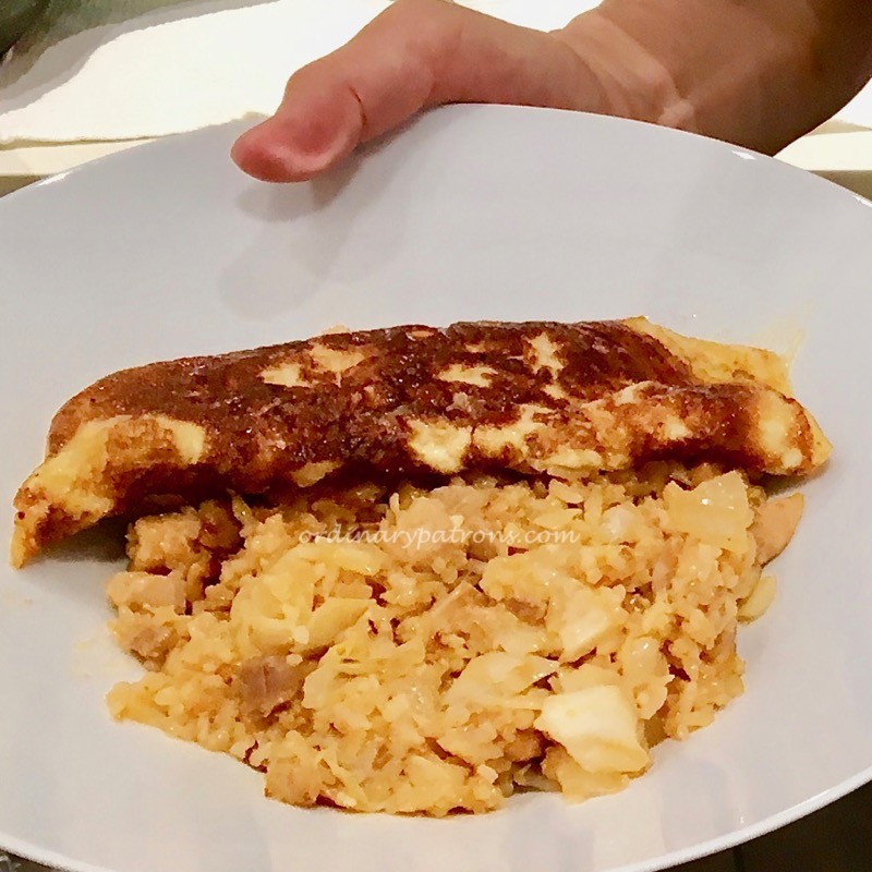 After a few minutes of cooking, this is the end product – Omelette and fried rice curry at the Kaku-Uchi Sake Bar, Isetan Scotts. I thought that the omelette part was good. The outer part was slightly charred but the insides remaining soft. The fried rice part was average, mainly because Japanese rice was used which made it soggy and sticky. The chilli flavour was added directly into the egg and so they were good enough to be eaten on their own. I only used a small fraction of the curry provided.