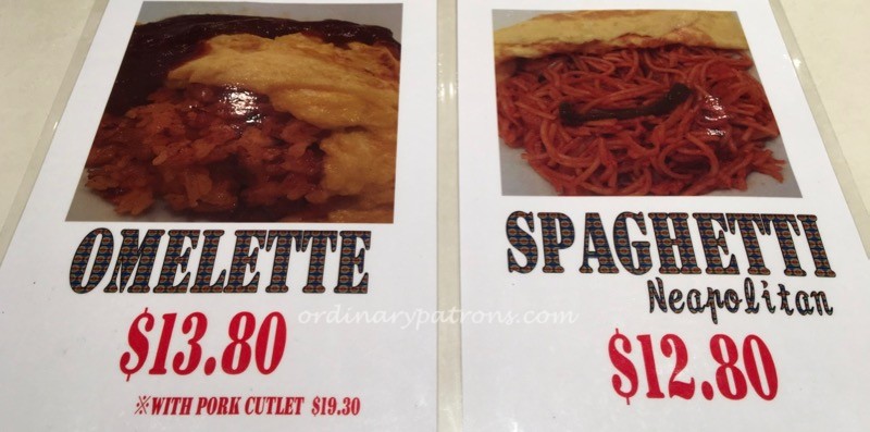 Here is a picture of the topping menu. Â On weekends (Friday to Sunday), the chef creates two special dishes – Omelette and Spaghetti Neoplitan. I was easily persuaded to try the Omelette ($13.90).