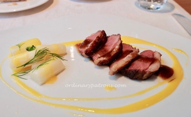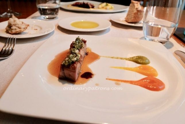 We had the duck breast and white asparagus with orange and aniseed herbs and lamb with grilled peppers and “rosemary chimichurri” The duck had a rather chewy texture. We preferred the lamb which came with three kinds of sauces.