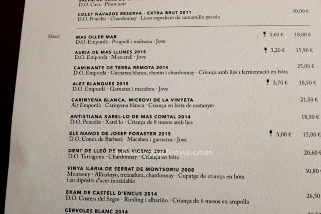 From past experience we have discovered that you can’t go far wrong with the white wines from Spain. Here is a picture of the white wine section of the wine list. We ordered a couple of them by the glass, costing about 3.7 € each.